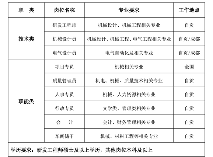 4、工作地点: 四川省自贡市高新工业园区富川路3号