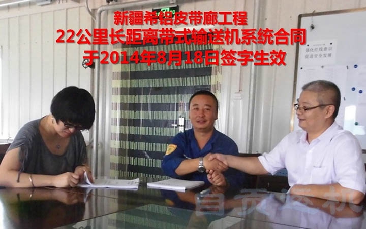 新疆东方希望有色金属有限公司长距离带式输送机项目经过激烈竞标,我公司顺利中标。近日已完成技术和商务谈判,并签订合同,该项目是从天隆采矿区上煤点至新疆东方希望有色金属有限公司电厂堆场和煤化工项目堆场三个卸煤点的长距离皮带廊输送系统,单条输送线总长度约21.8公里,输送能力2000万吨/年,长距离带式输送线系统额定输送能力4000t/h。