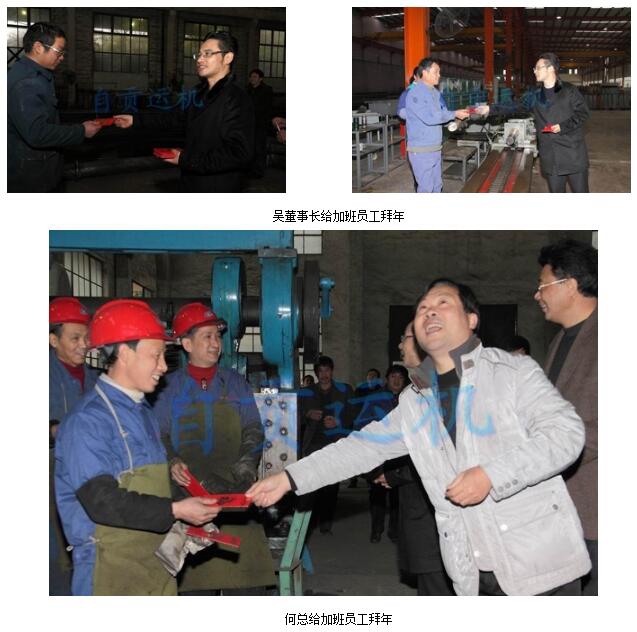 正月初四(1月26日)上午,公司董事长吴友华带领公司高层领导,前往板焊车间、金工车间、板焊二车间、托辊车间、员工食堂等生产一线,给放弃春节休息的员工致以新春的问候,并给大家拜年。轻轻的一声问候,虔诚的一句祝福,倾注了吴董事长以及公司领导的无限真挚。