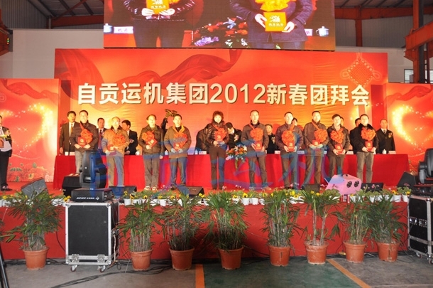 团拜会以公司2011年度工作总结及表彰大会拉开序幕,董事长吴友华首先向全体员工致以新春诚挚的问候和美好的祝福,同时总结过去、展望未来。他说:自贡运机正处于一个大展宏图、实现跨越式发展的时代,2012年是公司的质量效益年,我们要围绕2012年度目标责任书,抓住机遇,挖掘整合资源,争取在经营业绩上取得更大的突破。总经理何大利对公司4个优秀团队、10名优秀管理者、43名优秀员工进行了表彰,同时代表公司与董事长签订了2012年目标责任书,并鼓励全体员工齐心协力、共同实现自贡运机2012年的新跨越!