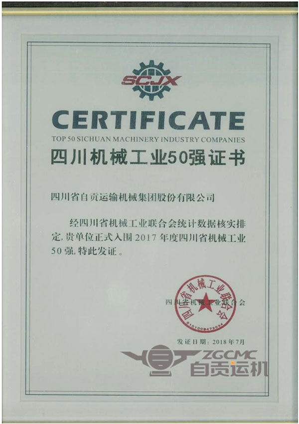 2018年7月20日上午,四川省经信委、四川省机械工业联合会在成都金牛宾馆,对全省机械工业50强企业进行授牌表彰,我公司喜获此殊荣。