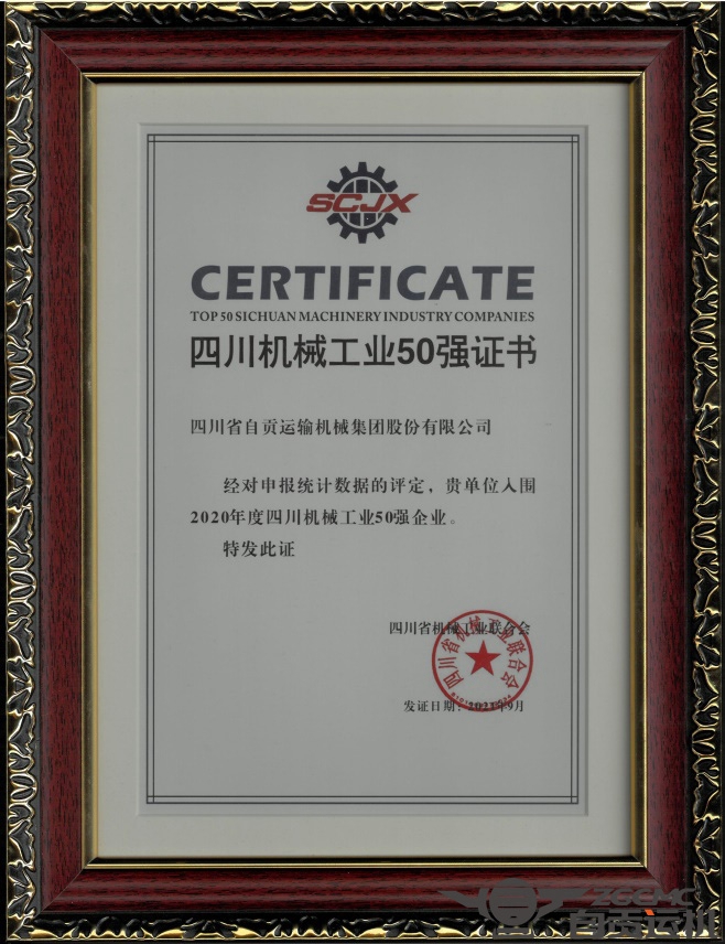 2021年9月16日下午,四川省经济和信息化局、四川省机械工业联合会在成都世纪城会展中心,对全省机械工业50强企业进行授牌表彰,我公司喜获此殊荣。