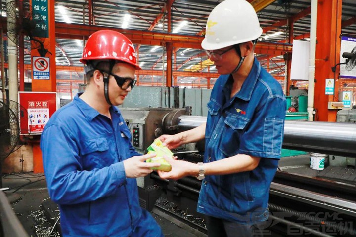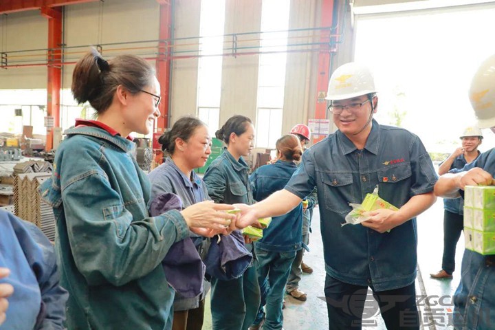 7月28日,集团总经理吴正华,集团党委书记、工会主席叶茂奇,集团生产副总经理邓继红,集团工会副主席樊庆玲前往车间慰问以女子焊工组为代表的车间一线职工,为大家送去凉茶。