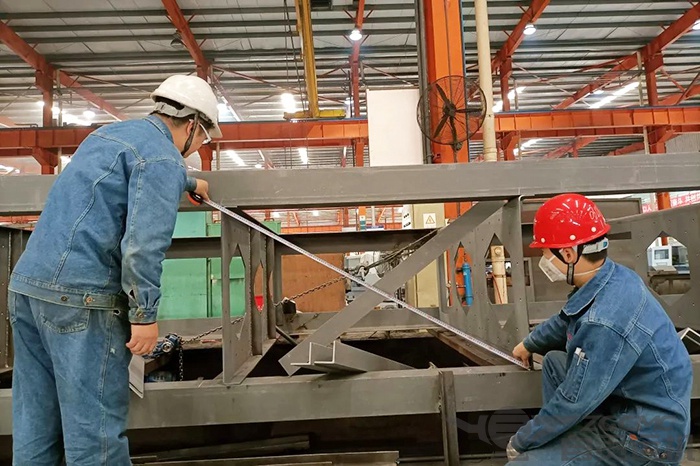 一旁,我们现场的检验人员在积极的配合生产工作,对照图纸、比对尺寸,认真负责,不放松任意一个环节,为我们的生产质量把好最后一道关卡。