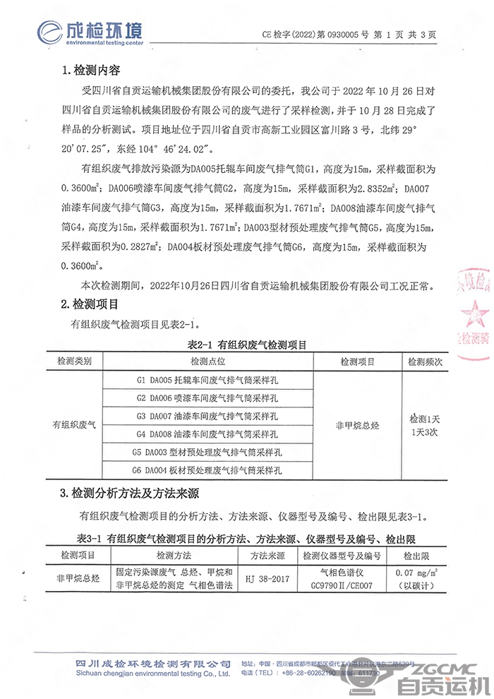 尊龙凯时机械集团股份有限公司2022年废气排放检测公示公告