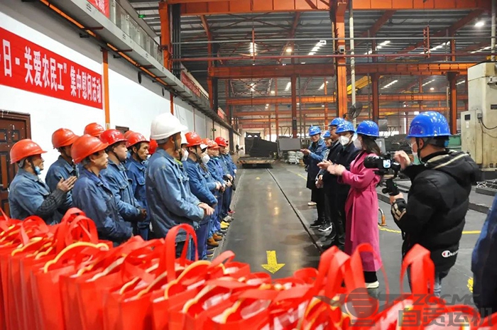 春节将至,1月12日上午,由自贡市人力资源和社会保障局党组书记、局长邹传红,党组成员、副局长李晓利;市总工会党组成员、副主席彭惬羚;市农民工服务中心副主任王冬梅等领导组成的慰问组,至运机集团深入生产一线慰问农民工。运机集团党委书记、工会主席叶茂奇一同参加。