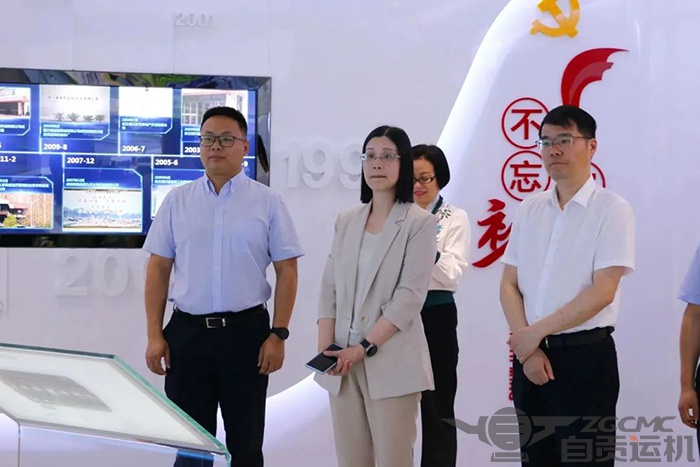 运机集团领导许俊杰陪同朱江副主任一行参观了集团展厅。