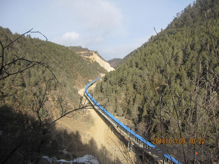 2015年我公司新产品开发项目“U型深槽角曲线带式输送机”已开发完成,并成功运用于迪庆香格里拉昆钢鸿达水泥有限公司2500T/D水泥熟料生产线原料输送项目中。该项目总长为1192m,带宽B=1000mm,带速为2.5m/s;主要技术特点:平面线路布置上有4个水平转弯,前一个水平转弯半径为1600m,圆心角为6.70°,后三个水平转弯半径只有425m,圆心角分别为18.94°、11.98°、52.92°,且 后两个水平转弯(圆心角为11.98°和52.92°)构成“S型”布置;立面线路布置上共有3个凸弧和4个凹弧,凸弧半径分别为200m和500m,凹弧半径为1500m和5000m,凹凸弧段均与水平转弯弧段重叠,构成复合转弯段;我公司采用了可调内抬角的U型托辊组实现了自然导向形式的水平转弯。在公司项目管理部的精心组织下,短短一周就完成了调试工作。