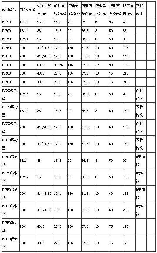 FU系列输送链技术参数表